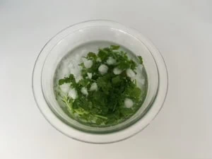 • Y plonger la coriandre et la retirer Ă  peu prĂšs immĂ©diatement (environ 2 secondes)